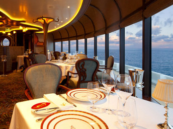 Zariadenie kajút: dvojlôžková queen posteľ (matrace Posturepedic Sealy, bielizeň z egyptskej bavlny), skriňa, kúpeľňa so sprchou, vaňou a WC, sušič na vlasy, kozmetika H20+ spa (šampón, kondicionér a telové maslo), obývacia časť so sofa a stolíkom, oddeliteľná závesom, 22 palcová plochá Tv, bezpečnostná schránka, telefón s priamou linkou, zrkadlo, regulovateľná klimatizácia.