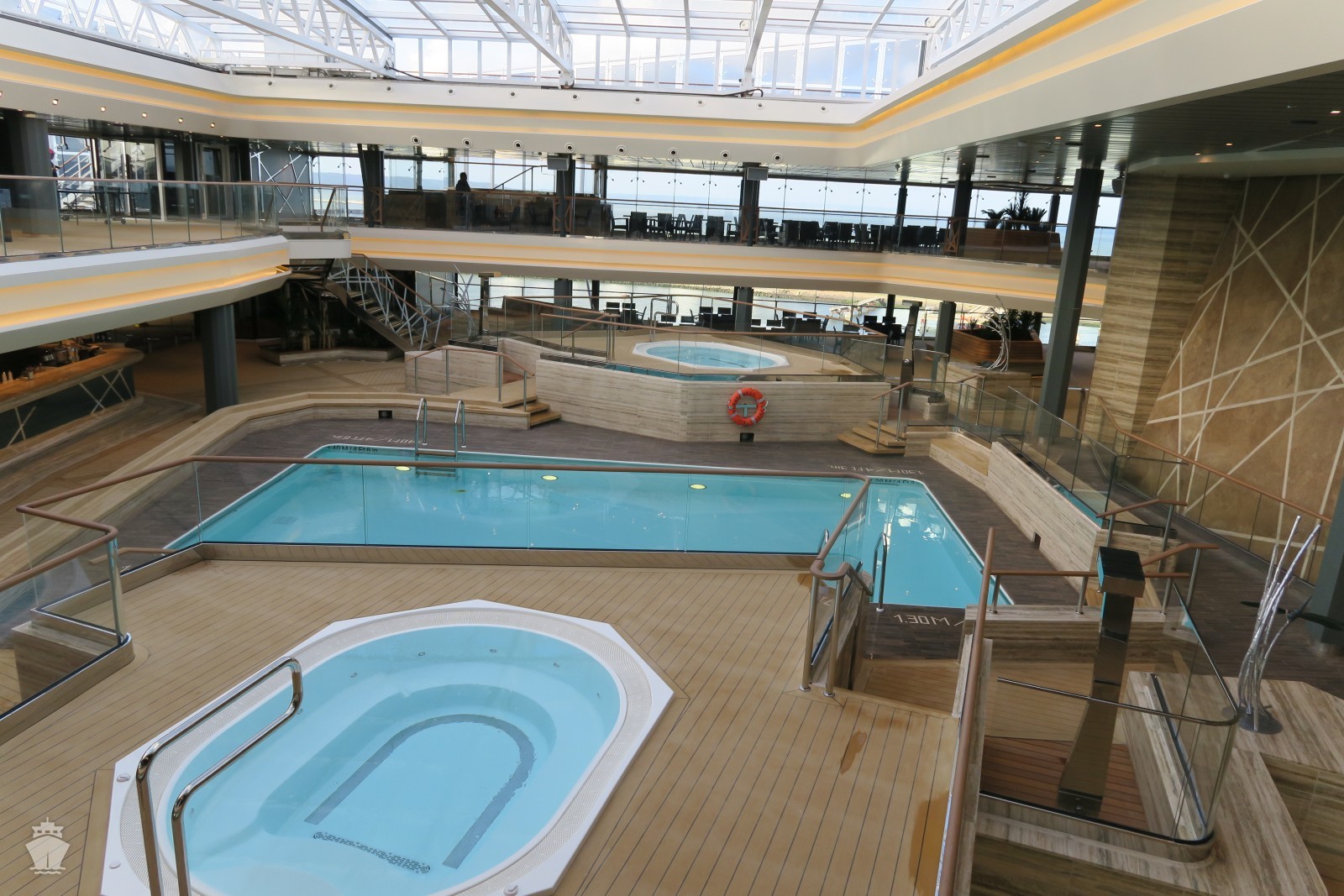 - Trojposchodový Yacht Club so 78 suitami, 15 vnútornými kajutami a 2 obrovskými apartmánmi, každý s veľkou obývacou miestnosťou a dvomi balkónmi, na ktorých nájdete veľký jedálenský stôl, ako aj súkromnú vírivku. K Yacht Club bude patriť aj exkluzívna vonkajšia paluba, bazén, salon a reštaurácie.