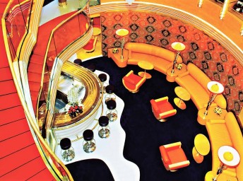 Srdcom Oosterdamu je nádherný kryštáľový Waterford globus, prominentne vystavený v trojpodlažnom átriu a je symbolom vyše 140 ročnej histórie tejto lodnej spoločnosti. Loď je zariadená v tradičnom štýle, typickom pre Holland America: teplá paleta farieb podtrhuje extenzívne použitie kryštáľu, mramoru, vykladaného dreva a mede, pôvabné kvetinové dekorácie, vzácne originály umeleckých diel a starožitnosti, ako aj a palubná promenáda plne vykladaná teakovým drevom s čalúnenými lehátkami a kreslami