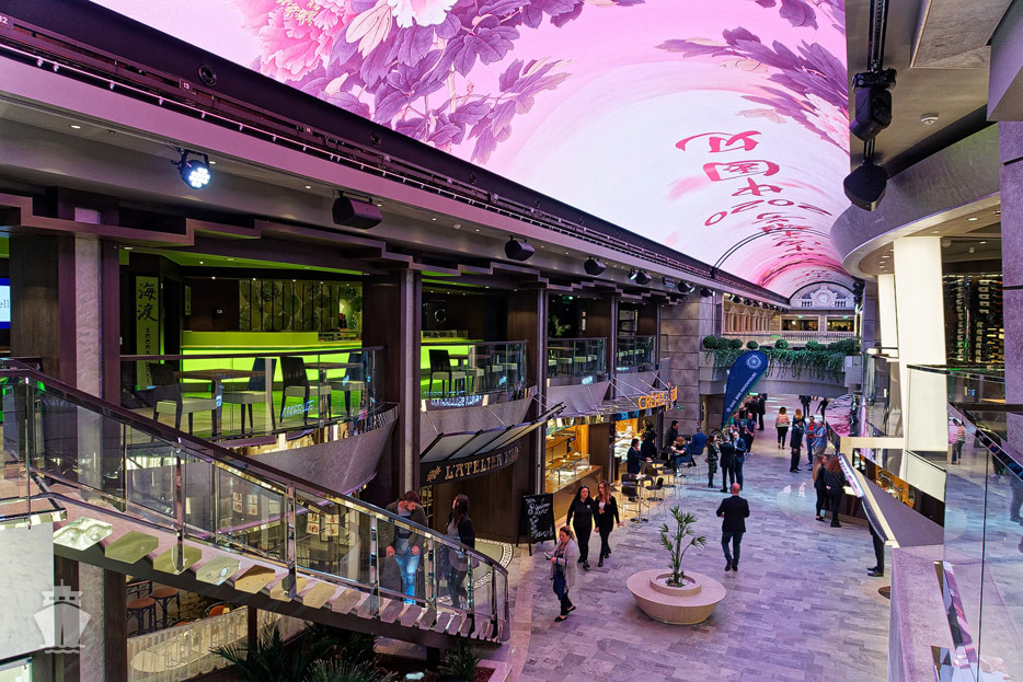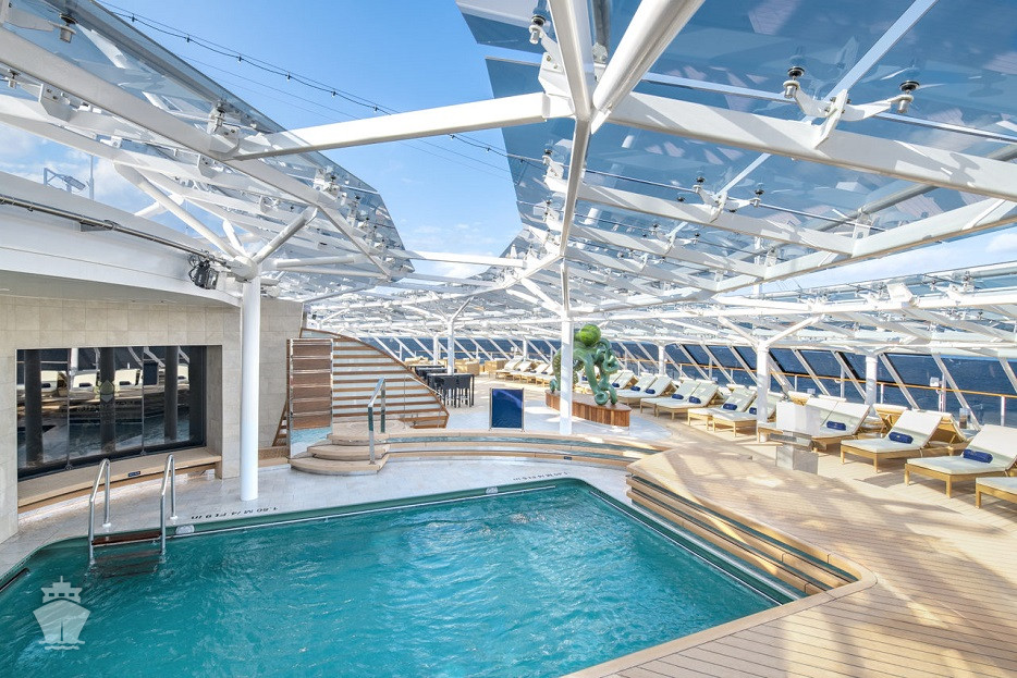 • Trojposchodový Yacht Club so 78 suitami, 15 vnútornými kajutami a 2 obrovskými apartmánmi, každý s veľkou obývacou miestnosťou a dvomi balkónmi, na ktorých nájdete veľký jedálenský stôl, ako aj súkromnú vírivku. K Yacht Club patrí aj exkluzívna vonkajšia paluba, bazén, salon a reštaurácie.