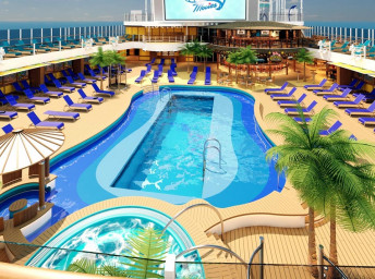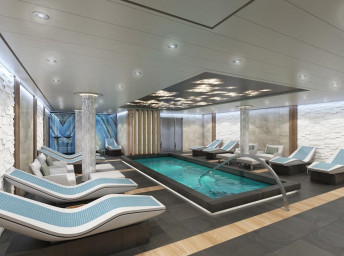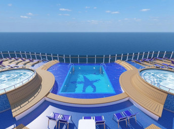 Serenity (18. paluba) 8:00 - 23:00. Oddychová zóna pre dospelých 21+ s bazénom, barom, lehátkami a kreslami a 2 vírivkami.