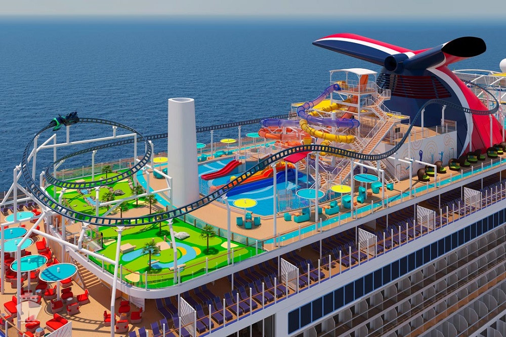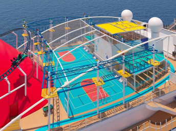 6. Ultimate Playground na 18. až 20. palube nie je iba pre deti! Vzrušujúca BOLT Ultimate Sea Coaster, dlhá 243 m, s rýchlosťou vyše 60 km/hod a vo výške 57 m nad hladinou mora je prvou horskou dráhou na mori vôbec! Okrem toho tu nájdete vodný park WaterWorks s toboganmi; 182 metrovú lanovú dráhu a športovú zónu SportSquare s minigolfom, ping-pong a poly-pong stolmi, twisterom, skybiliardami, basketbalovým ihriskom.