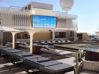 Priestranná terasa pri hlavnom bazéne sponúka množstvo miest na sedenie, niekoľko víriviek a detský aquapark. Pre tých, ktorí preferujú pokoj a relax, je k dispozícii priestor Infinity Beach s dvomi presklennými bazénmi, s pohodlným barovým sedením či plyšovými lehátkami.