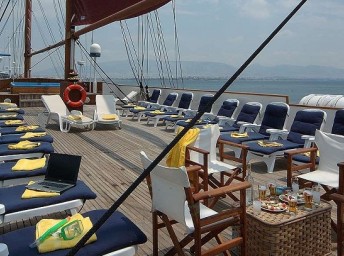 Na lodi je malá knižnica, kartové a stolové hry a na programe je aj premietanie filmov, prednášky. Na zadnej časti plavidiel sa nachádzajú platformy umožňujúce vykonávanie vodných športov priamo z lode (plávanie, šnorchlovanie, kajakovanie, potápanie ...). Hostia majú tiež vzácnu príležitosť navštíviť kapitánsky mostík (po dohode vopred s kapitánom)