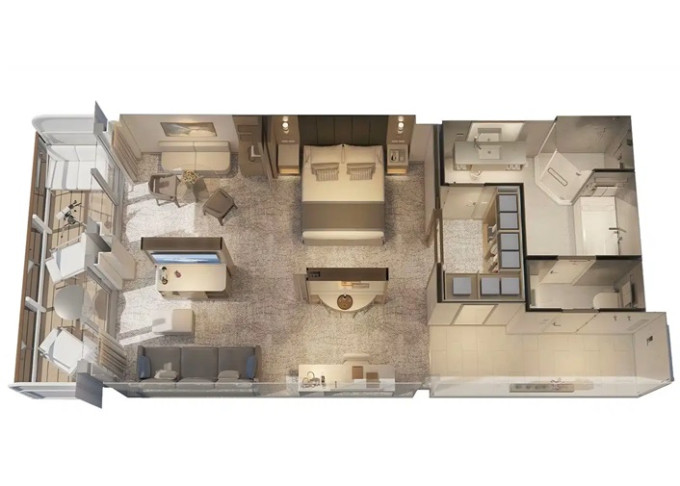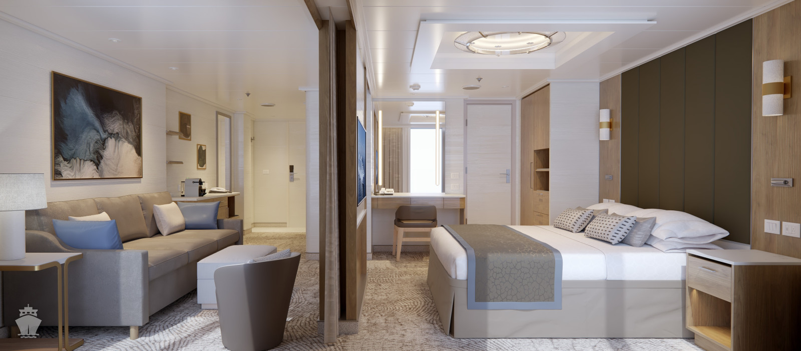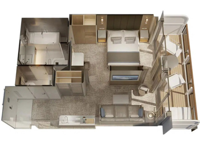 C2 - Reserve Cabana Mini Suite 30 m² (vrátane 3 m² lounge a 3 m² balkónu). 9. paluba. Výhody Reserve Collection a Výhody Mini Suite. | 3 924 € 1 962 € za osobu |