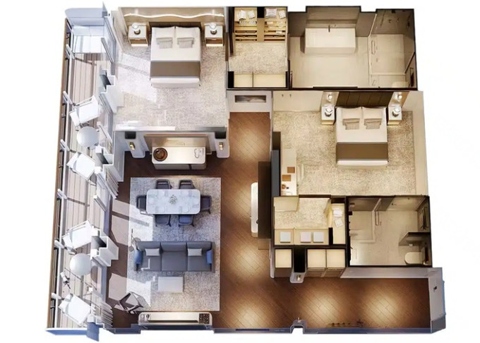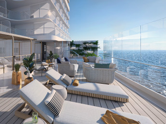 S0 - Signature Sky Suite 117 m² (vrátane 14 m² balkónu). 16. paluba vzadu. Max 5 osôb, Výhody Signature Suite. | 25 786 € 12 893 € za osobu |