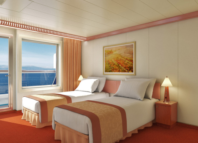 8N - Kajuta s väčším balkónom Aft-View 17 m² + balkón 5,5 m². 8. paluba vzadu. Max 3 osoby. 1 416 € 708 € za osobu