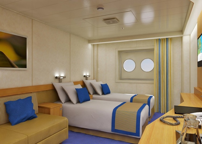 4J - Vnútorná kajuta s oknom / obmedzený výhľad od 17 m². Neotvárateľné okno / obmedzený výhľad. 3,6,7. paluba. 1 154 € 577 € za osobu