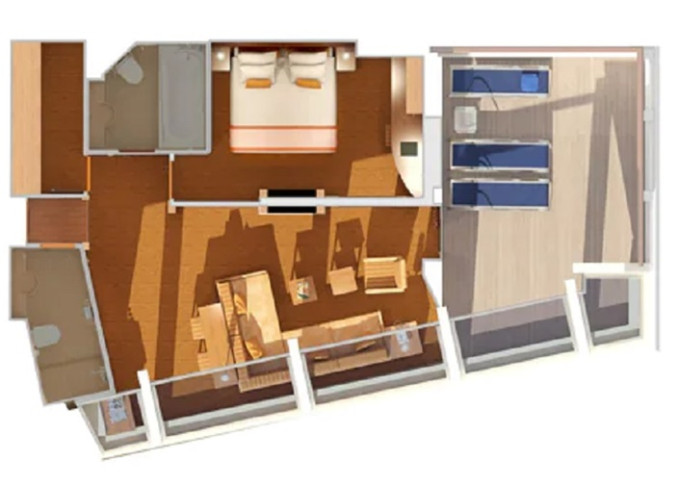 GS - Grand Suite 32 m² + balkón 8 m². 7. paluba stred. Výhody Suite. 4 178 € 2 089 € za osobu