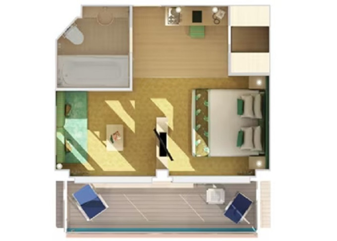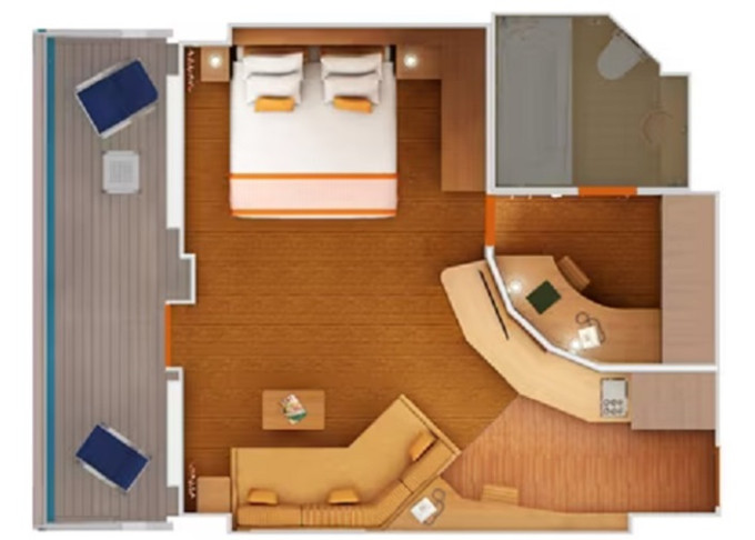 8S - Kajuta s balkónom Cloud 9 Spa 17 m² + balkón 3 m². 10. paluba vpredu. Voľný vstup do Spa a balíček Cloud 9 Spa. 1 968 € 984 € za osobu