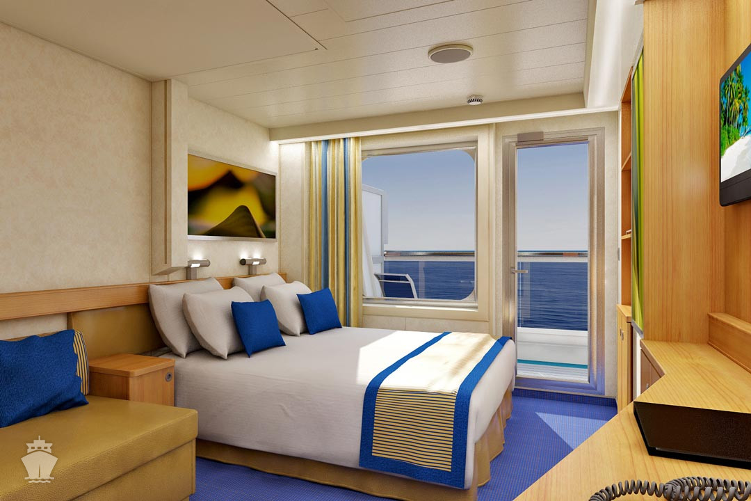 9C - Kajuta s balkónom Premium Vista 21 m² + rohový balkón 7 m². 6,7,8. paluba vzadu. 2 800 € 1 400 € za osobu