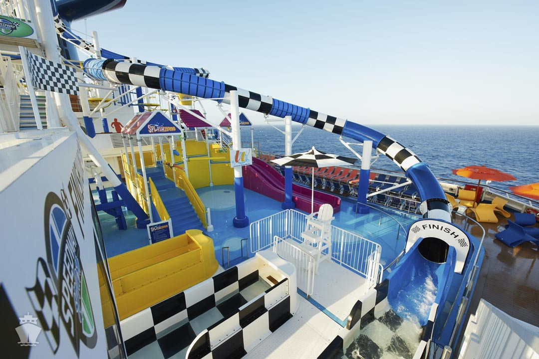 • Využívanie fitness centra, sauny, bežeckej dráhy, bazénov, víriviek, tobogánov a vodného parku (na vybraných lodiach), mini golf, basketbal, volejbal, stolný tenis, knižnica