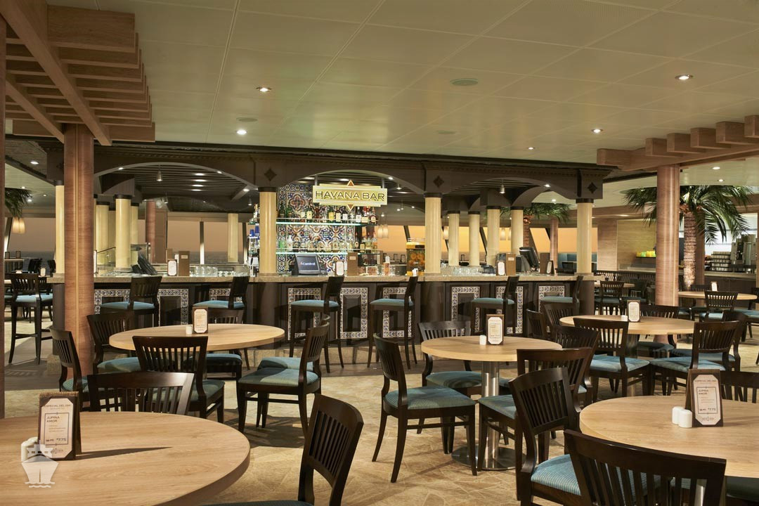 • Čapovaná voda, limonáda, ľadový čaj, káva, čaj, kakao z automatov v hlavnej reštaurácii Main Dining Room a bufetovej 24/7 reštaurácii Lido