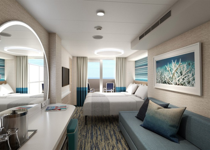 7S - Kajuta s balkónom Cloud 9 Spa Cove 19 m² + balkón s chráneným výhľadom 4 m². 5. paluba vpredu. Voľný vstup do Spa a balíček Cloud 9 Spa. | 2 136 € 1 068 € za osobu | ||