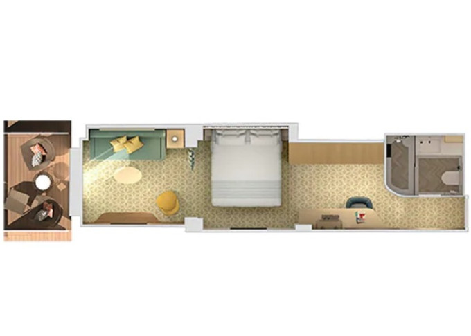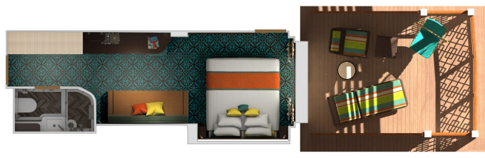 HE - Kajuta Havana Cabana s patiom 19 m² + vonkajšie patio 8 m². 8. paluba vpredu. Tropický štýl, vstup do exkluzívnej zóny Havana. | 2 638 € 1 319 € za osobu | ||
