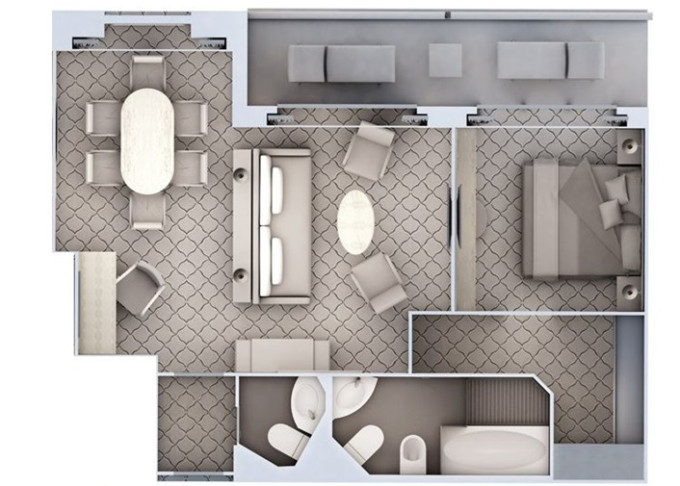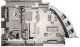 R1 - Royal Suite 1 69 m² (vrátane balkóna 12 m²). 6. paluba. Max 3 osoby. 111 900 € 37 300 € za osobu
