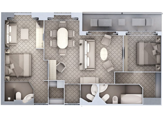 R2 - Royal Suite 2 96 m² (vrátane 2 balkónov 16,5 m² spolu). 6. paluba. Max 6 osôb. 116 800 € 116 800 € za osobu
