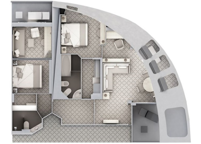 O2 - Owner's Suite 2 77 m² (vrátane balkóna 9 m²). Owners Suite O1 spojená s Vista Suite. 7. paluba. Max 5 osôb. 126 000 € 126 000 € za osobu