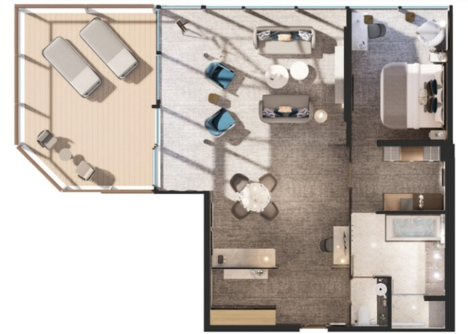 SL - Silver Suite 43 m² + balkón 7 m². 8. paluba vpredu. Max 3 osoby. | 61 000 € 30 500 € za osobu | ||