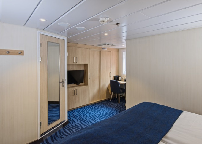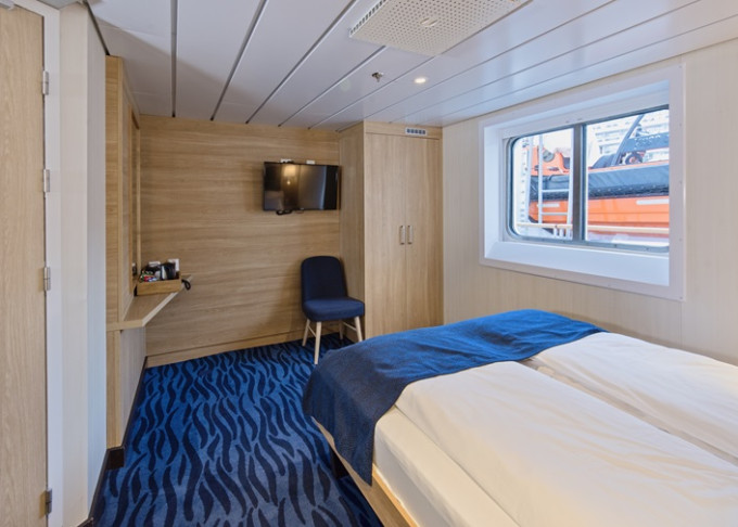 O3 - Vonkajšia kajuta Polar 13-14 m². Neotvárateľné okno. Tv, sejf, varná kanvica. 4. paluba. Max 3 osoby. | 10 476 € 5 238 € za osobu | ||
