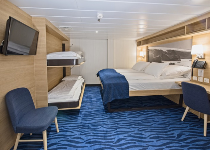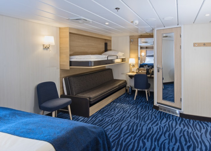 Q3 - Expedition Mini Suite 16-17 m². Neotvárateľné okno. TV, sejf, minibar, kávovar, varná kanvica. 4. paluba. Max 3 osoby. Výhody Suite. | 12 178 € 6 089 € za osobu |
