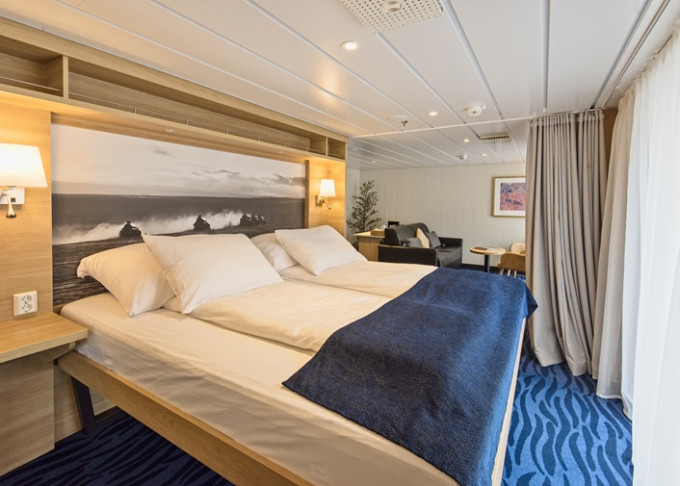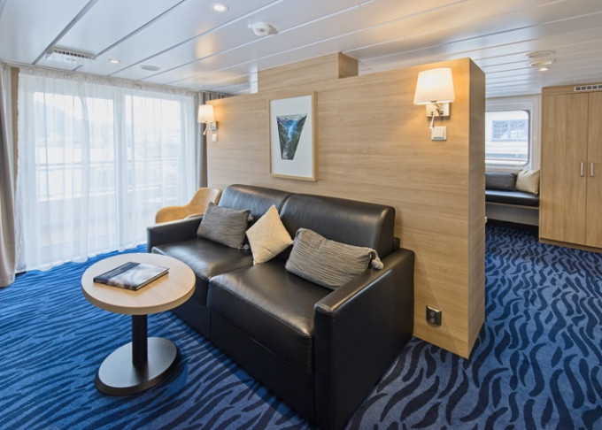 Q4 - Expedition Mini Suite 21-22 m². Neotvárateľné okno. TV, sejf, minibar, kávovar, varná kanvica. 4. paluba. Max 4 osoby. Výhody Suite. | 12 366 € 6 183 € za osobu |