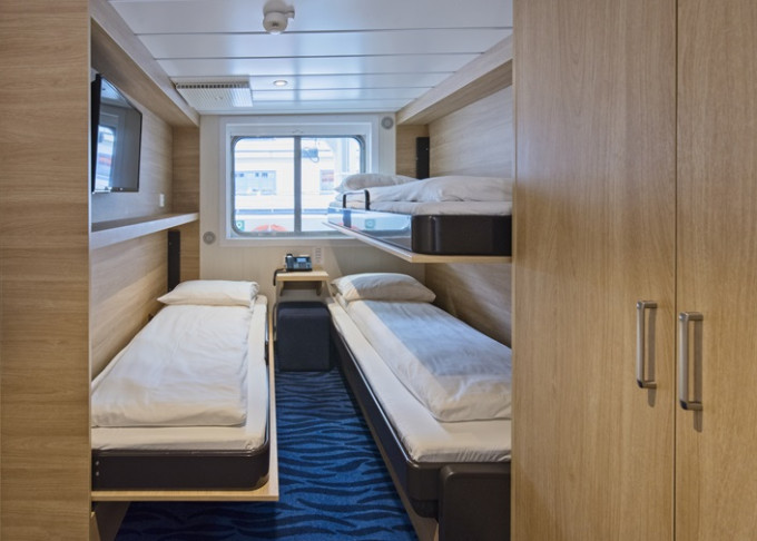 A2 - Vonkajšia kajuta Polar 9-13 m². Neotvárateľné obló. Spodné a horné lôžko, Tv, sejf, varná kanvica. . Max 2 osoby. | 9 802 € 4 901 € za osobu |