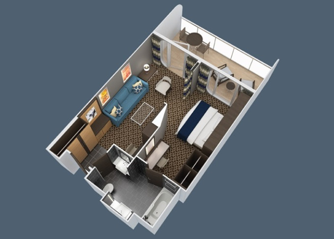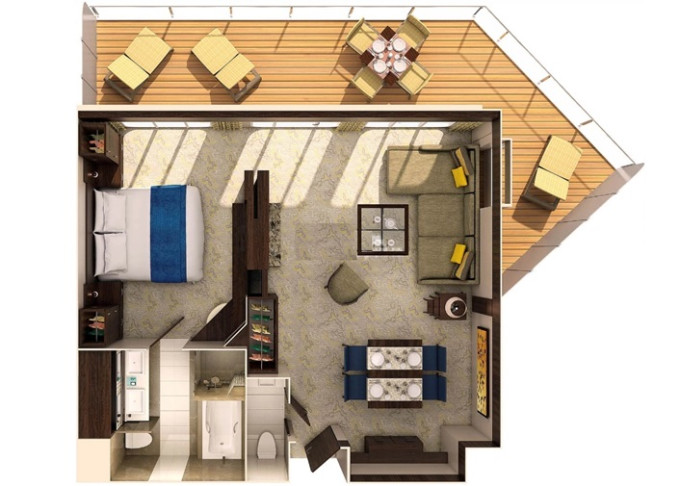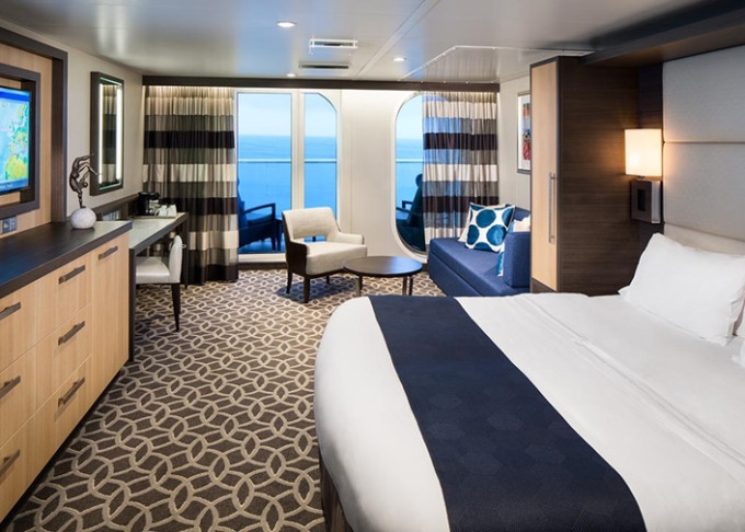 J4 - Junior Suite s balkónom 25 m² + balkón 7,5 m². 6. až 13. paluba. Max 4 osôb. Výhody Royal Suite Sea Class. | 5 817 € 5 817 € za osobu |