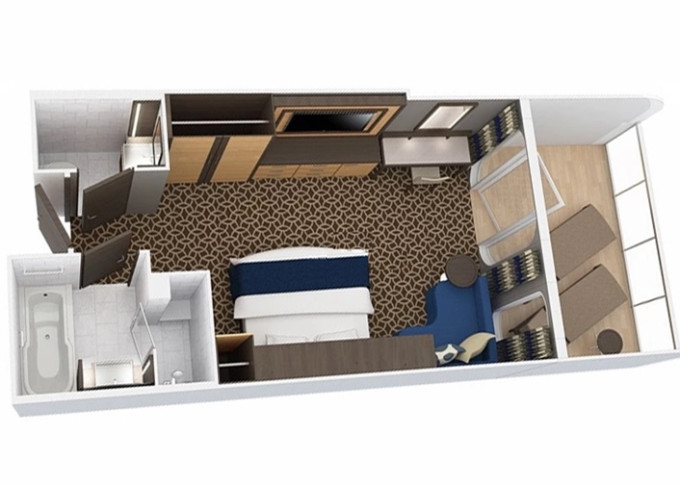 2F - Kajuta s balkónom Single Studio 10 m² + balkón 5 m². 6,7. paluba. Max 1 osoba. | 5 724 € 1 431 € za osobu | ||