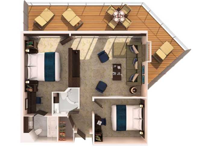 GT - Grand Suite s balkónom / 2 spálne 50 m² + balkón 24 m². 9,10. paluba. 2 spálne, 2 kúpeľne, šatník. Max 8 osôb. Výhody Royal Suite Sky Class. | 11 262 € 11 262 € za osobu |