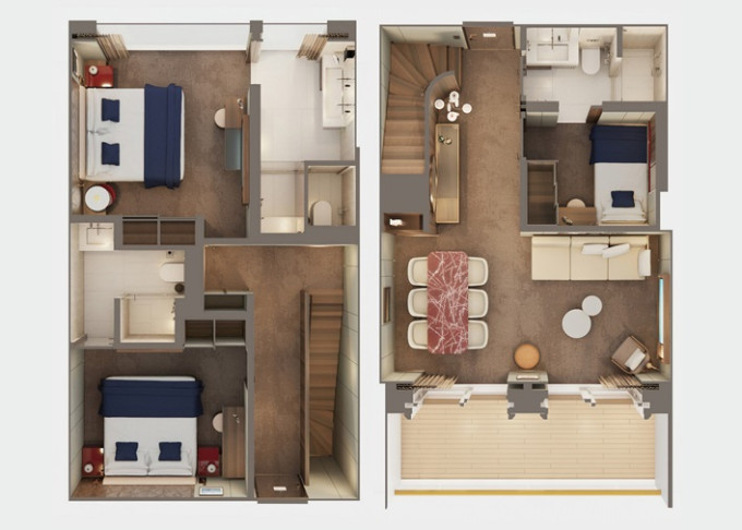 H8 - The Heaven Duplex Suite Dvojpodlažný apartmán. 84 - 84 m² / balkón 10-11 m².15/16. paluba. Max 5 osôb. Výhody The Haven. | 13 900 € 6 950 € za osobu |