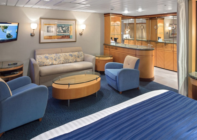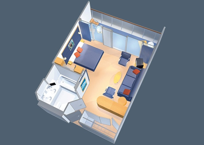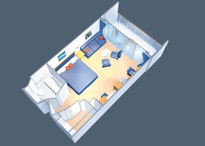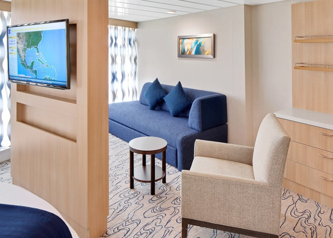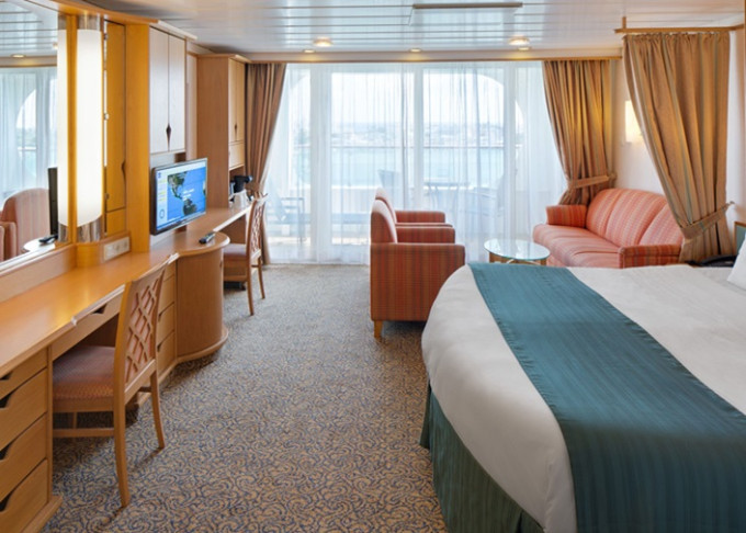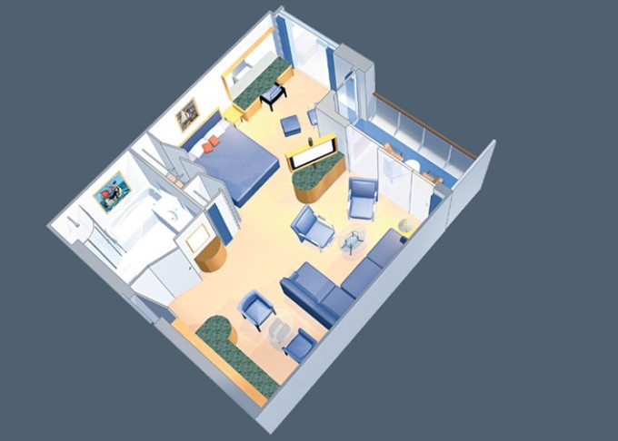 VP - Ocean View Panoramic Suite (bez balkónu) 37 m². Panoramatické neotvárateľné okná.12. paluba - vpredu. Max 6 osôb. Výhody Royal Suite Class. | 4 842 € 4 842 € za osobu |