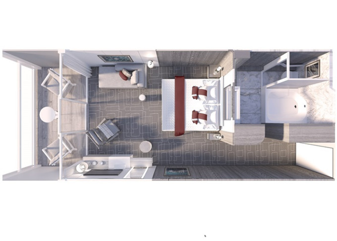 E2 - Kajuta Edge s balkónom Infinite 18,5 m² + balkón Infinite 4 m². 6. až 8. paluba. Max 2-4 osoby. 2 939 € 2 939 € za osobu