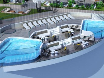 EV - Edge Villa 69 m² + terasa s vírivkou 19 m². 2-poschodový apartmán. Max 4 osoby. 15,16. vpredu. paluba. Výhody Suite. 15 244 € 7 622 € za osobu