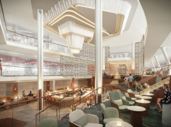 je miesto, ktoré ponúka vždy iný zážitok pri každej návšteve. Zo dňa na noc sa osvetlenie mení z teplého a príjemného na jasné a dramatické. Aj pre Celebrity Beyond sme oslovili kreatívneho génia dizajnérskej firmy Jouin Manku, ktorý vytvoril originálny trojposchodový priestor inšpirovaný námestiami Talianska a povzbudzujúcou energiou všetkých, ktorí sa stretávajú, aby si vychutnali chuť dobrého života.