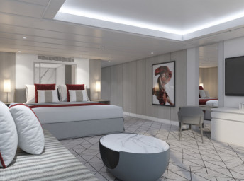 CS - Celebrity Suite 37 m² + balkón 9 m². 11,12. paluba vpredu. Max 4 osoby. Výhody Suite. 10 344 € 3 448 € za osobu