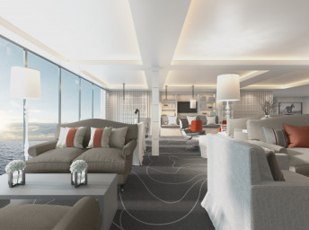 PS - Penthouse Suite 128 m² + balkón 18 m². 2 spálne, 2 kúpeľne (1 s vírivkou). 12. paluba vpredu. Max 6 osôb. Výhody Suite. 21 656 € 5 414 € za osobu