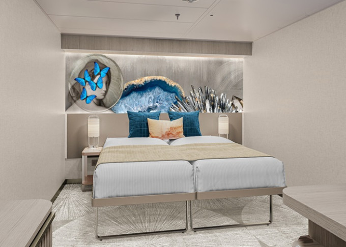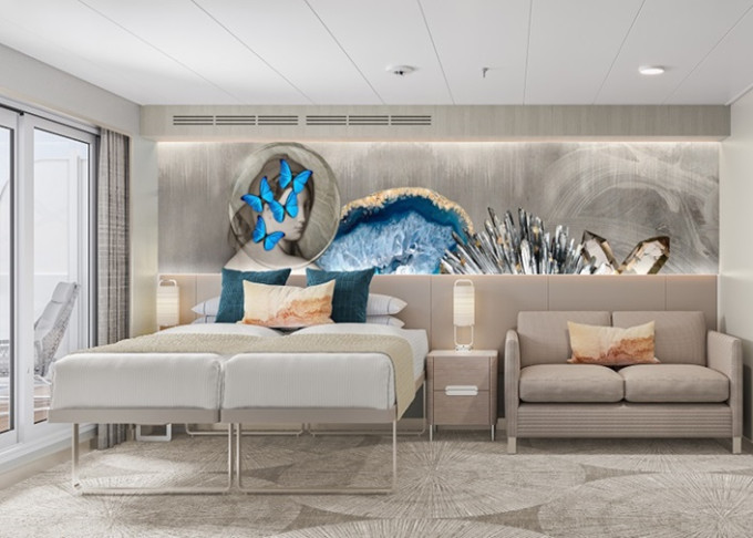 SI - Suite s veľkým balkónom Aft-Facing 41 m² / balkón 18 m². 9. paluba - vzadu. Max 2 osoby. Výhody Suite. | 5 318 € 2 659 € za osobu |