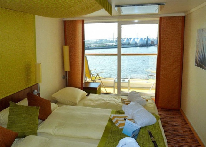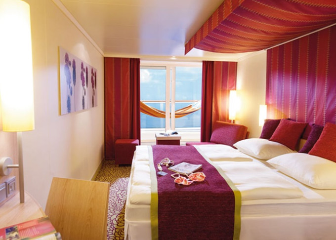 BB - Kajuta s balkónom PREMIUM od 17 m² / balkón od 3 m². 5. až 9. paluba. Max 4 osoby. Cenový model Premium. | 4 140 € 2 070 € za osobu |