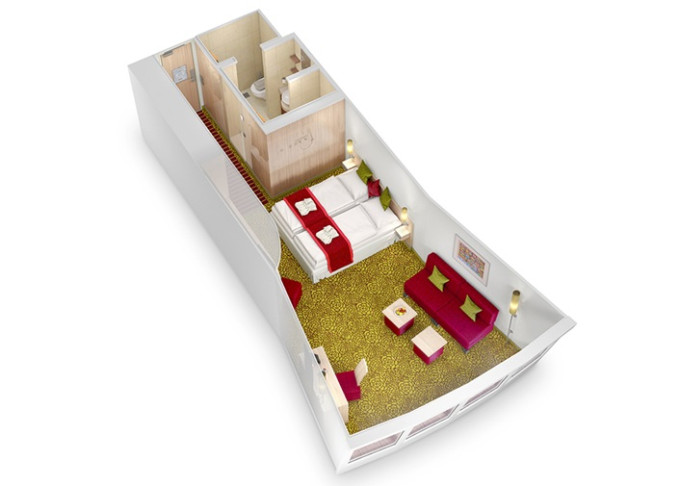 MA - Vonkajšia kajuta PREMIUM od 14 m². Neotvárateľné okno. 4,5. paluba. Max 4 osoby. Cenový model Premium. | 3 330 € 1 665 € za osobu | ||