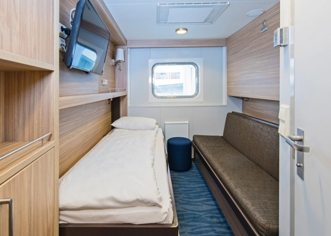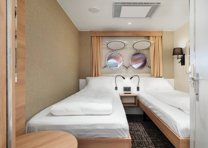 L2 - Vonkajšia kajuta Polar s obló 11 m². Neotvárateľné obló (môže byť obmedzený výhľad). Oddelené postele, Tv. 2, 3. paluba. Max 2 osoby. | 5 486 € 2 743 € za osobu | ||