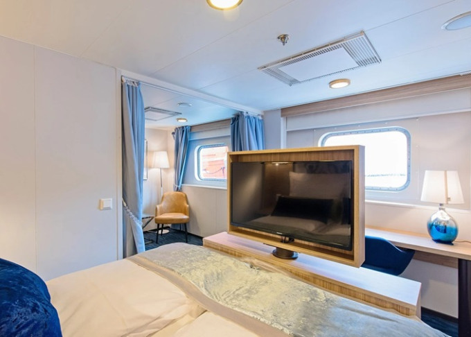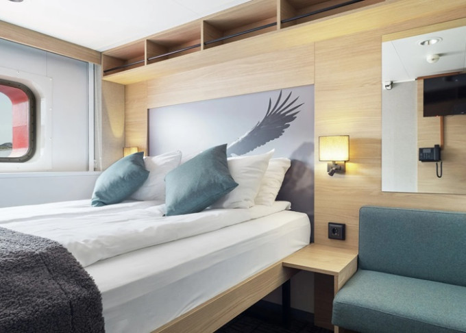 P2D - Vonkajšia kajuta Arctic Superior 11 m². Neotvárateľné okno. Manželská posteľ, Tv, varná kanvica. 5. paluba. Max 2 osoby. | 7 396 € 3 698 € za osobu | ||