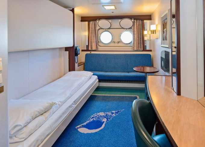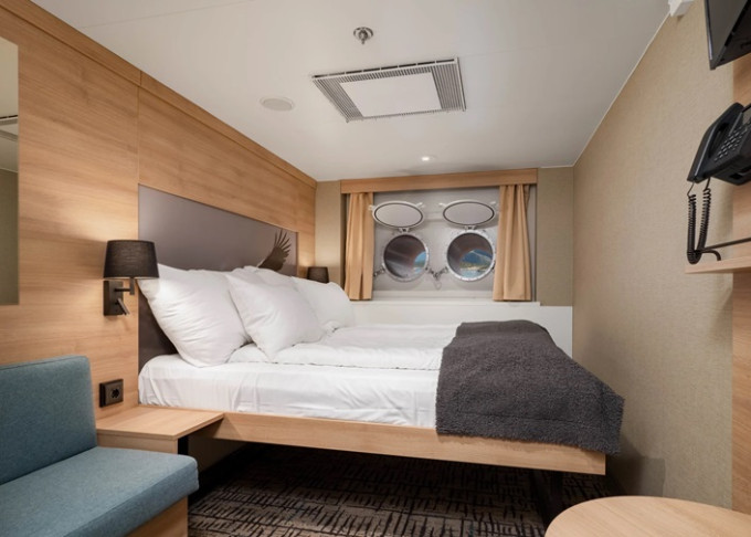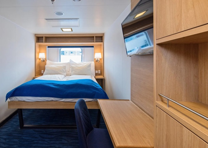 P2D - Vonkajšia kajuta Arctic Superior 10 m². Neotvárateľné okno. Manželská posteľ, Tv, varná kanvica. 5. paluba. Max 2 osoby. | 4 010 € 2 005 € za osobu | ||