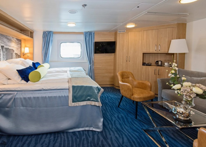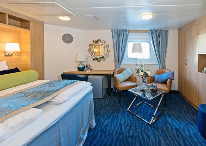 Q4 - Expedition Mini Suite 16-19 m². Neotvárateľné okno. Obývacia časť, Tv, WiFi, minibar, varná kanvica. 5, 6. paluba. Max 2 osoby. Výhody Suite. | 6 372 € 3 186 € za osobu | ||
