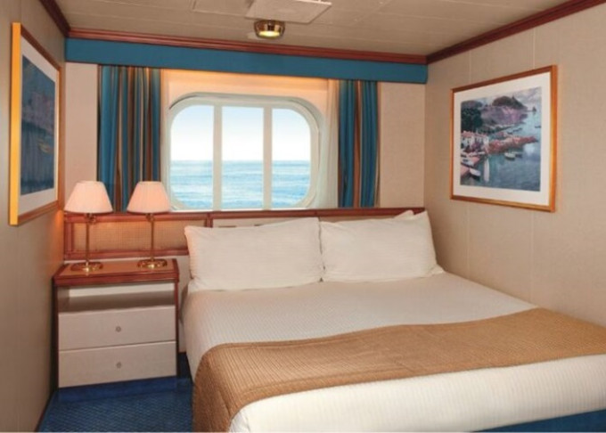 OV - Vonkajšia kajuta / obmedzený výhľad 16 m². Neotvárateľné okno s obmedzeným výhľadom. Max 2-4 osoby (2 horné lôžka). | 2 760 € 1 380 € za osobu |