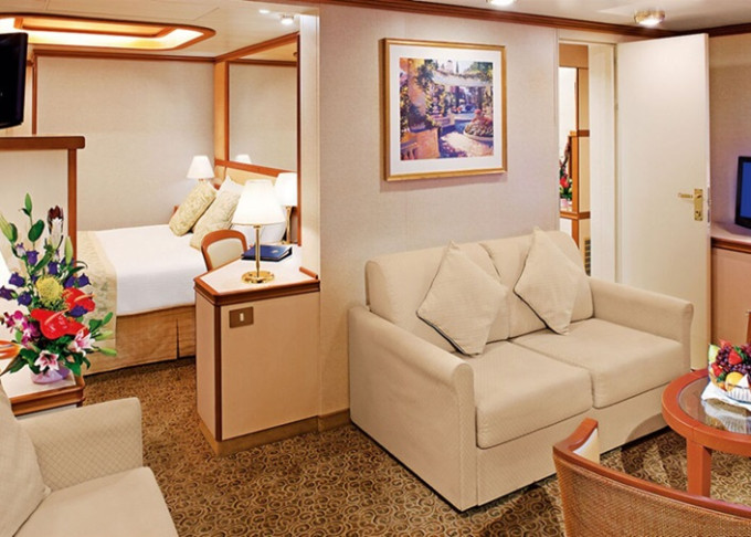 S6 - Vista Suite s balkónom 45 m² (vrátane balkóna). Max 3-4 osoby (gauč + horné lôžko). Výhody Suite. | 12 816 € 6 408 € za osobu |
