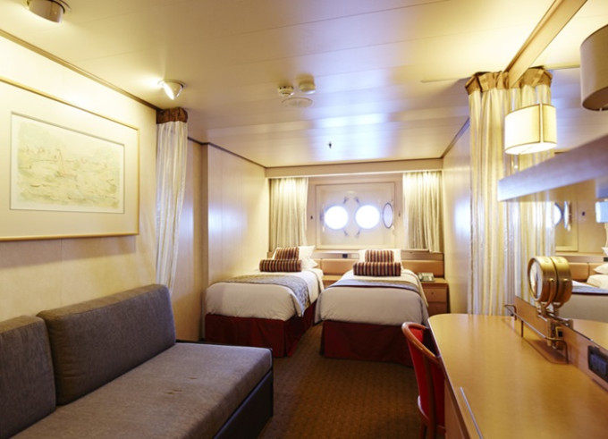 352 kajút s výhľadom na more a pre rodiny a skupiny priateľov je k dispozícii 52 kajút (balkónových) prepojených s výhľadom na more.