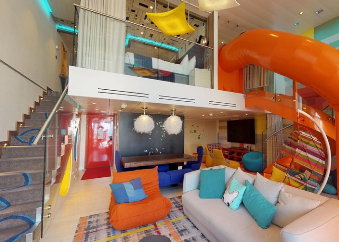 US - Ultimate Family Suite 105 m² + balkón s vírivkou 20 m². 2 podlažia.Stolný hokej a stolný tenis, ping-pong, kĺzačka, 3D kino, 3-metrová LEGO stena, 85-palcová Tv, 3 videokonzoly, ping-pong. 17. paluba. Max 8 osôb. Výhody Royal Suite Star Class. | 12 640 € 3 160 € za osobu |