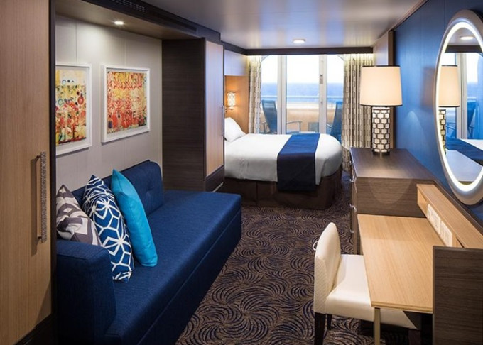 J3 - Junior Suite s balkónom 25 m² + balkón 7,5 m². Max 4-5 osôb. Výhody Royal Suite Sea Class. | 2 568 € 1 284 € za osobu |