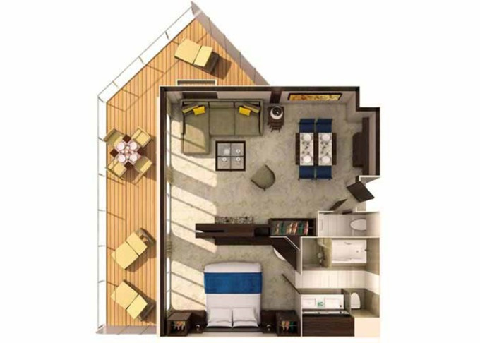 J4 - Junior Suite s balkónom 25 m² + balkón 15 m². 6/7/11. až 13. paluba. Max 4 osoby. Výhody Royal Suite Sea Class. | 3 039 € 1 013 € za osobu |